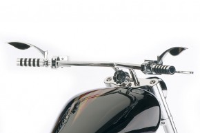 Der Lenker ist zur Kabeldurchführung gebohrt und mit Stehbolzen ausgestattet. Letztere sind mit einem M18 x 1,5er Gewinde & einer 10 mm Durchgangsbohrung versehen. Die Stehbolzen sind schon fest verschweißt.